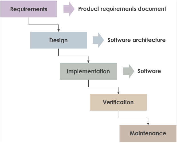 - Selge ja struktureeritud – üksikasjalikud juhised ja reeglid protsessi igas etapis. Kõik algab nõuete analüüsiga ja projektiplaanid on eelnevalt fikseeritud, mis aitab vältida ebakindlust ja hõlbustab projekti kontrollimist.
