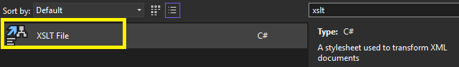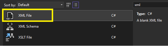 - Paremklõpsuga projektil Add -> New item loome XML-faili ja XSLT-faili