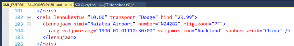 - SQL Serveris genereeritud xml-koodi lisame reis.xml-faili.